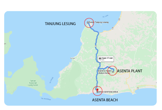JARAK ASENTA BEACH, ASENTA PLANT DARI JAKARTA RATA-RATA 4 JAM